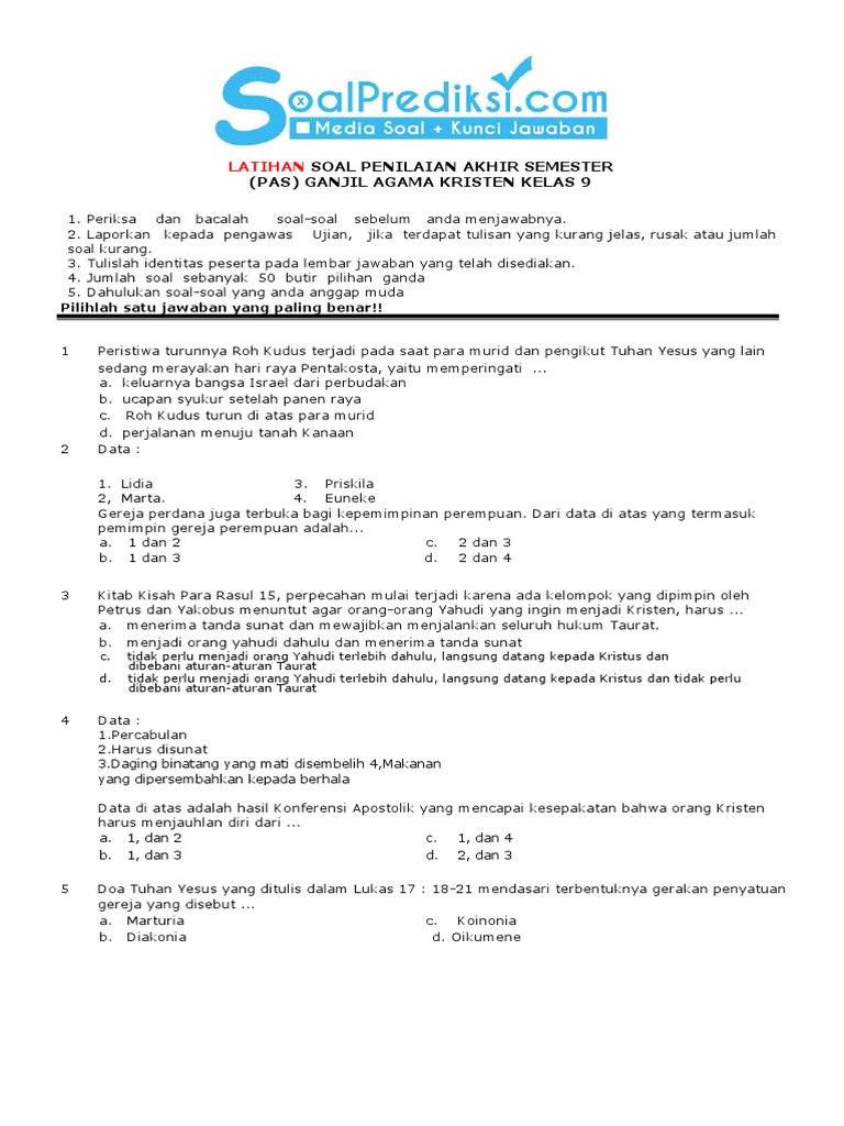 Soal Ujian Agama Kristen Kelas 9 from imgv2-1-f.scribdassets.com Maybe you would like to learn more about one of these? We did not find results for: Soal agama kristen kelas 9 dan kunci jawaban. Check spelling or type a new query.